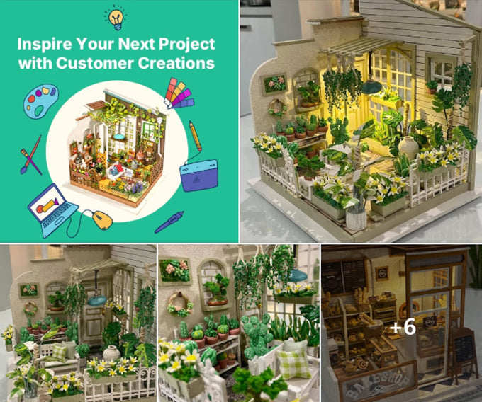 We're in awe of @Lib GM 's incredible creativity! They've turned our Rolife DIY kits into stunning garden, fruit shop, and bakery scenes.