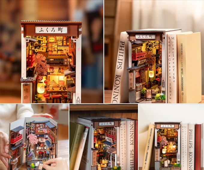 Introducing the Rolife Sakura Wine Alley DIY Book Nook Step into a serene Japanese alley filled with blooming sakura and the charm of traditional wine shops. This intricate book nook isn't just a craft—it's a gateway to a world of storytelling and beauty! Perfect for book lovers, collectors, and DIY enthusiasts