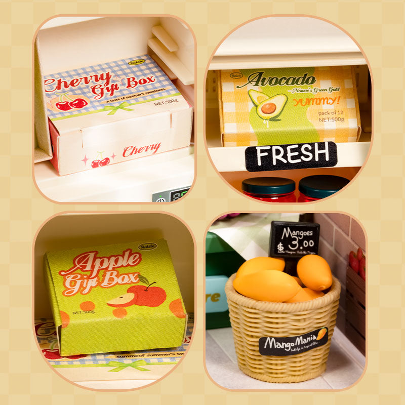 Nature Energy FruitsHolt eure Einkaufsliste raus, damit wir die Neuheiten bei Nature Energy Fruits entdecken können – einem bezaubernden, farbenfrohen Miniaturhaus von Rolife. Es ist ein unverzichtbarer Bestandteil jeder Gemeinschaft und sorgt dafür, dass die Anwohner täglich mit Ballaststoffen, Nährstoffen, Gesundheit und Lebensfreude versorgt werden. Bewundert die Vielfalt der Natur in den Regalen, packt ein paar Früchte in den blauen Einkaufswagen und gönnt euch vielleicht auch etwas Marmelade. Vergesst nicht, den Kühlschrank zu schließen, damit die Früchte frisch, saftig und knackig bleiben. Fühlt ihr euch schon voller Energie? Die Rolife Super Creator Series mit ihren unglaublich detailgetreuen Miniaturhäusern weckt eure Kreativität und euer handwerkliches Geschick.