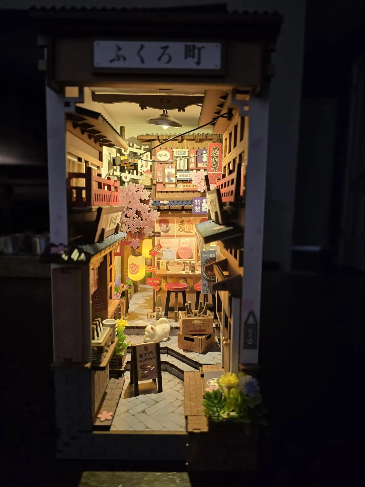 Rolife Sakura Wine Alley Book nook lighting effects