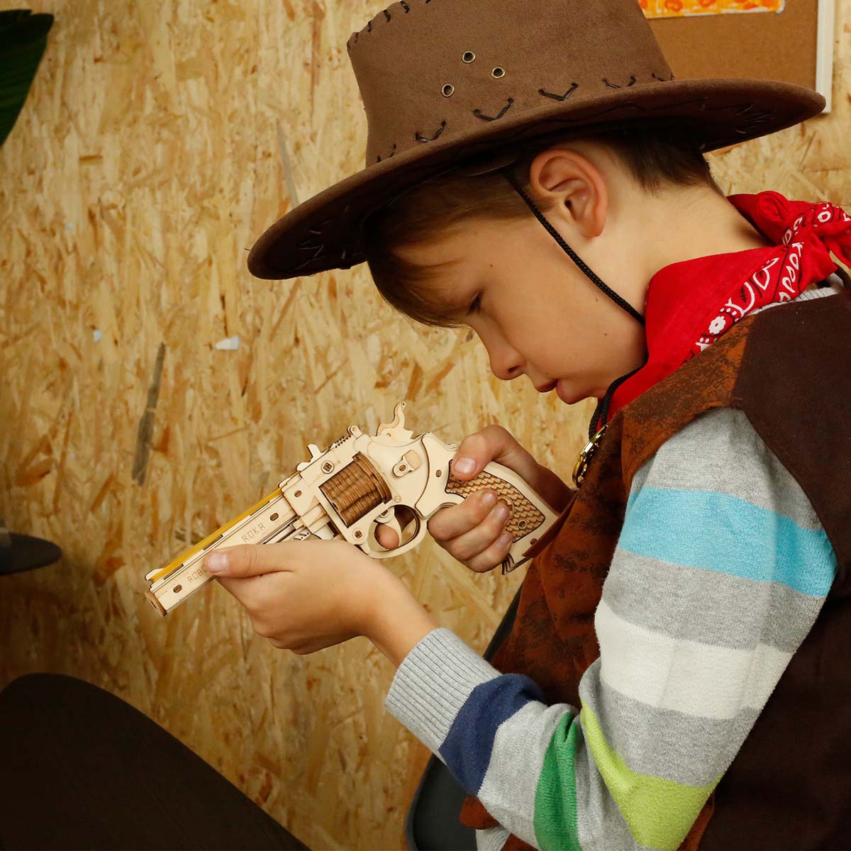 Inspired by classic guns Remington Model 870 and Smith & Wesson Model 60, ROKR 3D wooden puzzle toy gun models - Corsac M60 LQ401& Terminator M870 LQ501 are the perfect replicas of them in a cool steampunk style. These 2 gun models are easy-level weapon 3D wooden puzzles - feel free to assemble all the pieces together and gain knowledge about guns' mechanical construction, function, and firing principle. Enjoy the wonderful fusion of mechanical drive and wood craftsmanship all in one gun model!