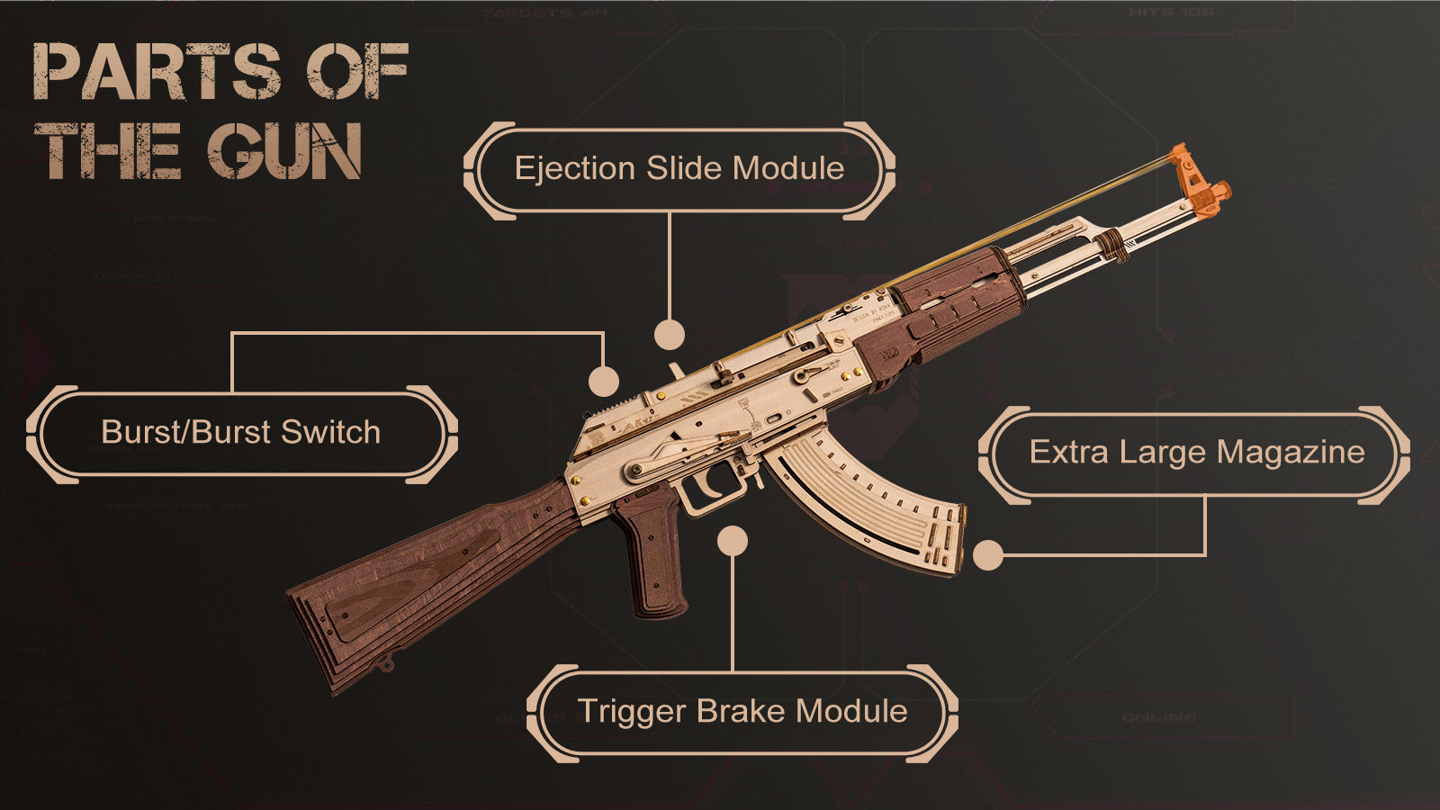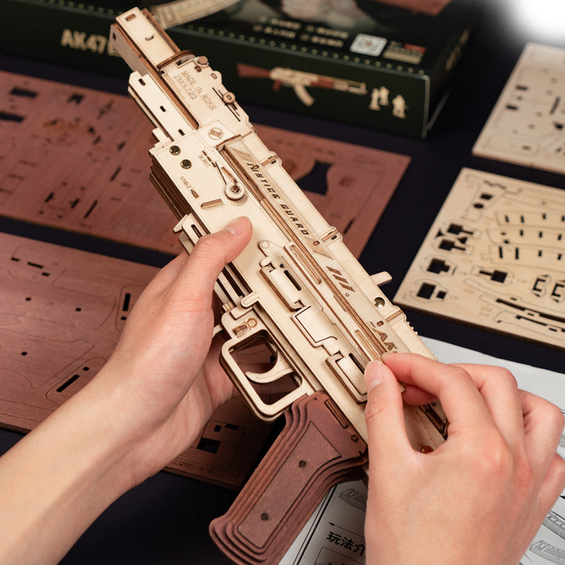 Si vous aimez les armes à feu, ce puzzle classique ROKR AK-47 Rifle est fait pour vous ! Ce puzzle 3D en bois comprend également un verrou de sécurité, qui rétablit la sécurité du fusil grâce à une structure mécanique et peut être actionné pour contrôler le tir. De plus, il est équipé d'un chargeur amovible classique, facile à utiliser d'une seule main. N'hésitez pas à vous amuser à assembler des modèles réduits et à revivre les joies de l'enfance !