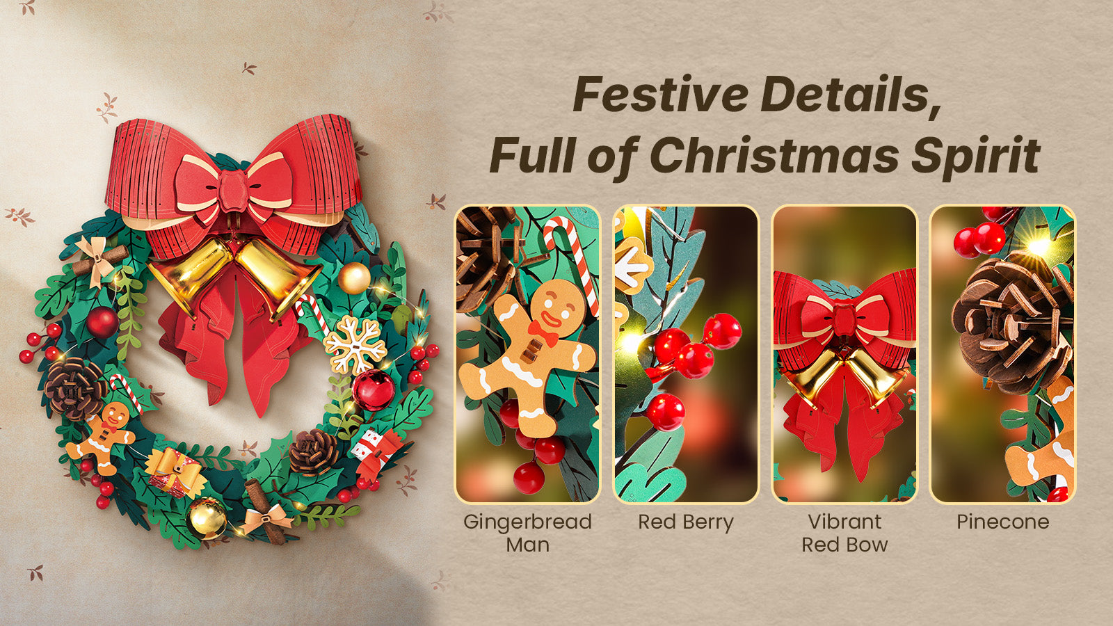 Rolife Couronne de Noël Puzzle 3D en bois TGL04