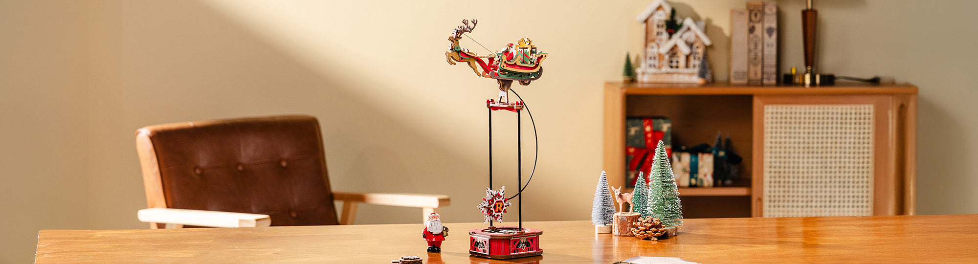 Pendule de Père Noël sur traîneau ROKR, jouet d'équilibre, puzzle 3D MCD05