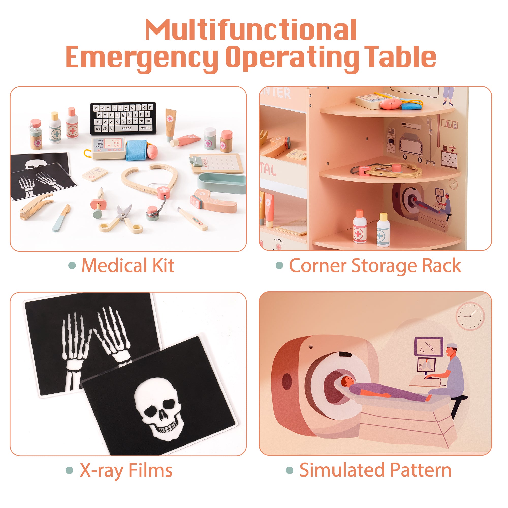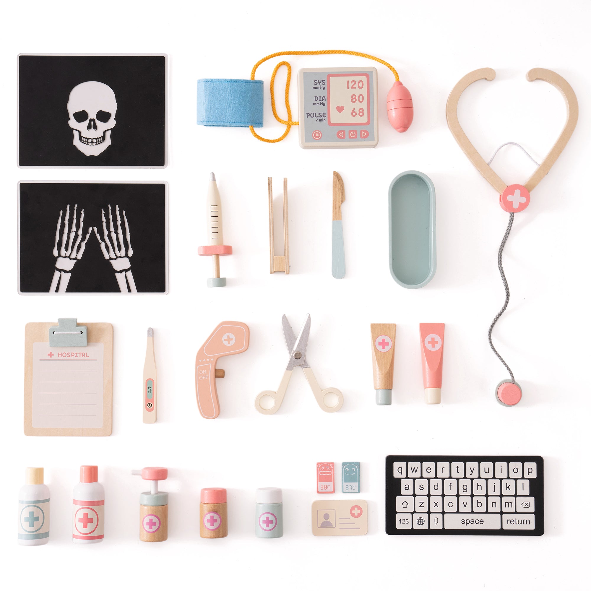 Creative doctor toy set for exciting role play ¨C This wooden doctor's activity center offers children a realistic environment with magnetic resonance imaging, visual examination, and interactive elements. Ideal for imaginative role play, this toy encourages social interaction.