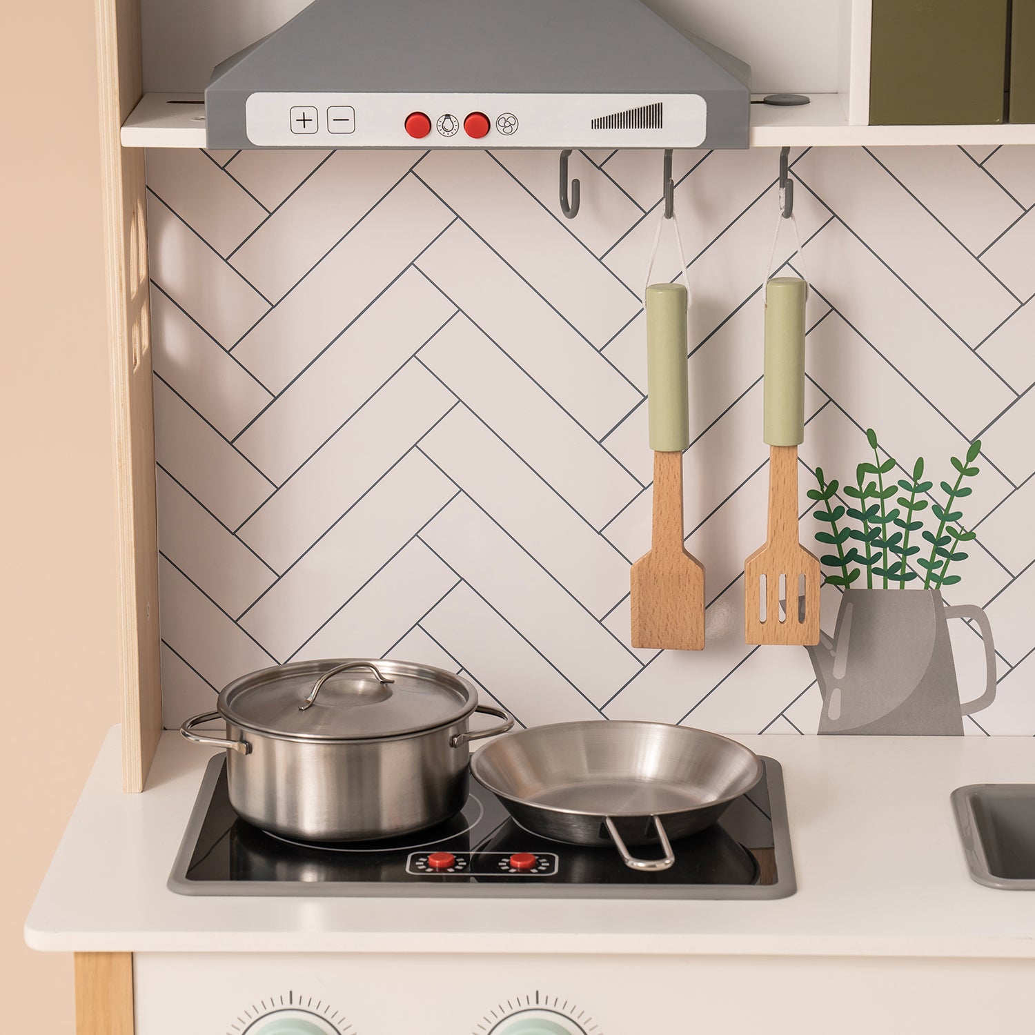 - Cuisine de jeu en bois : fabriquée en MDF et en bois de haute qualité, conforme aux normes de sécurité strictes ASTM et CPSIA, adaptée aux tout-petits de 3 ans et plus. Par rapport à une cuisine pour enfants en plastique, cet ensemble de cuisine pour tout-petits présente une structure plus stable et offre une durée de vie plus longue.