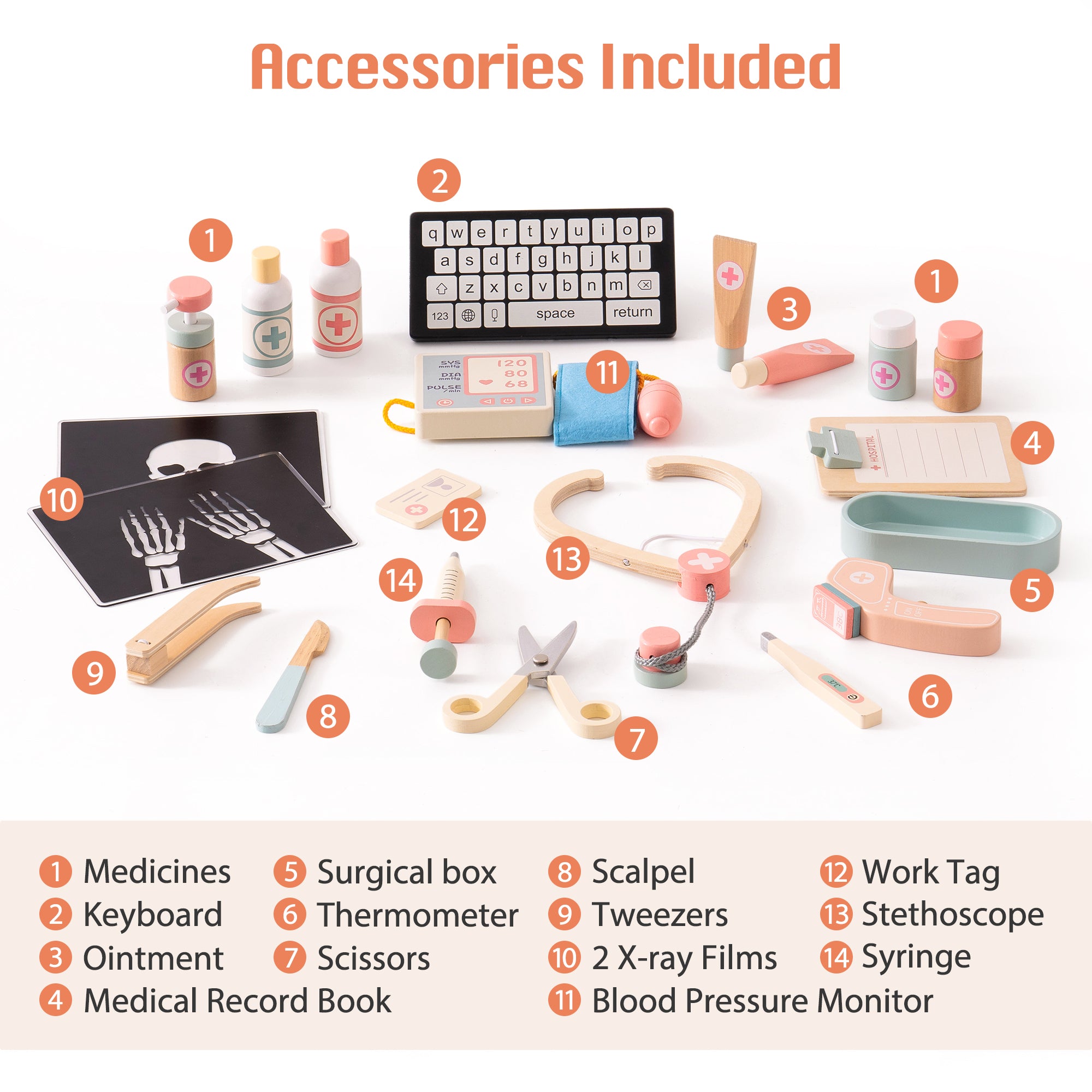 ROBUD Wooden Doctor's Activity Center Toy Set