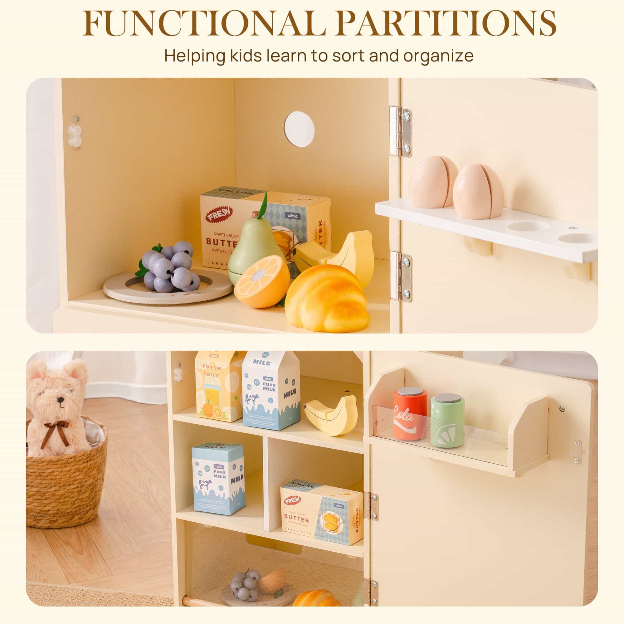 Durable and Safe Materials¡êoMade from high-quality natural wood, this fridge features smooth, rounded edges for safety. The non-toxic paint ensures it meets safety standards, giving parents peace of mind while children enjoy playing.
