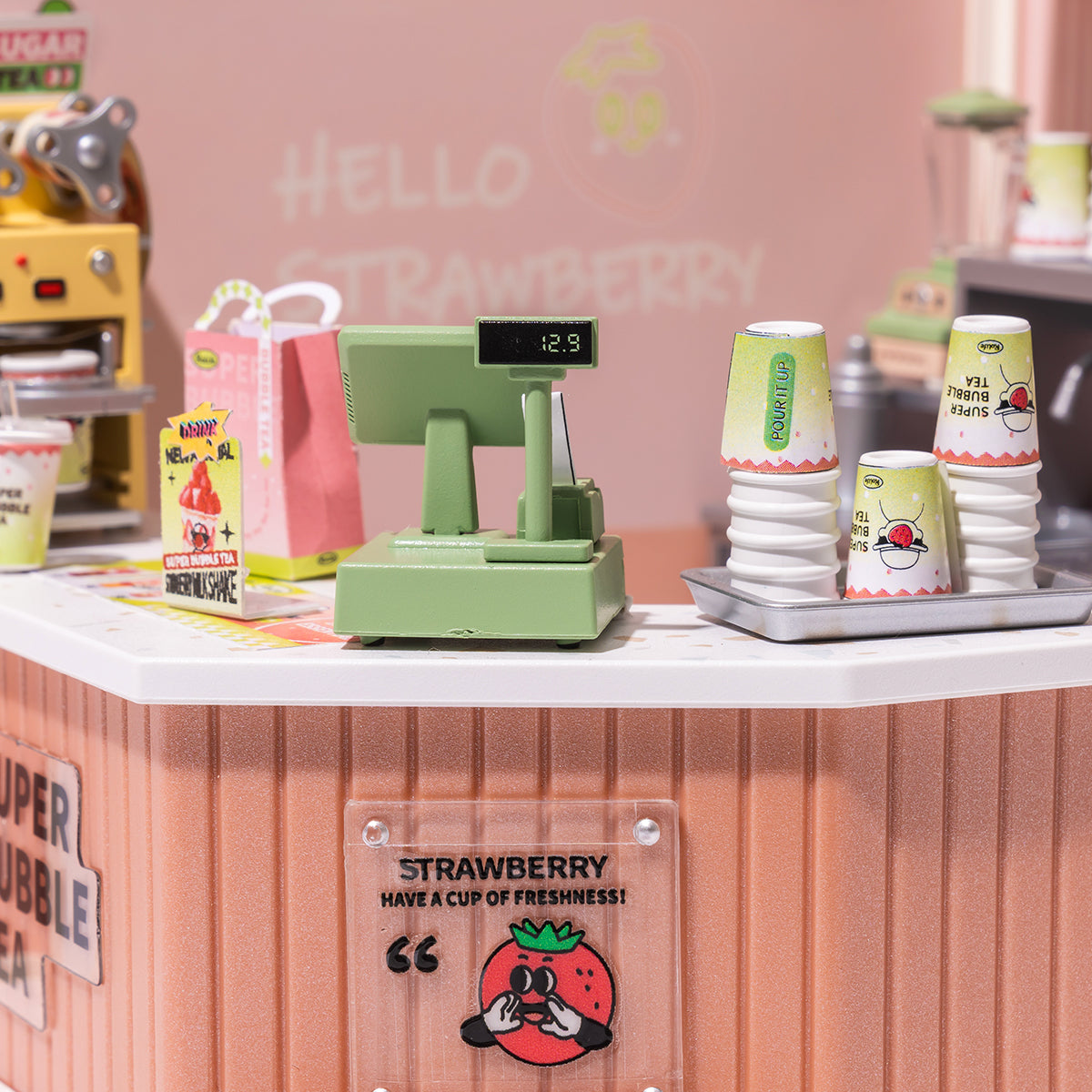 Double Joy Bubble Tea DW006 is a plastic DIY miniature house from Rolife Super Creator - Super Store Series. We believe that people's sorrows and joys may not be connected, but the mood of wanting to drink bubble tea is connected!