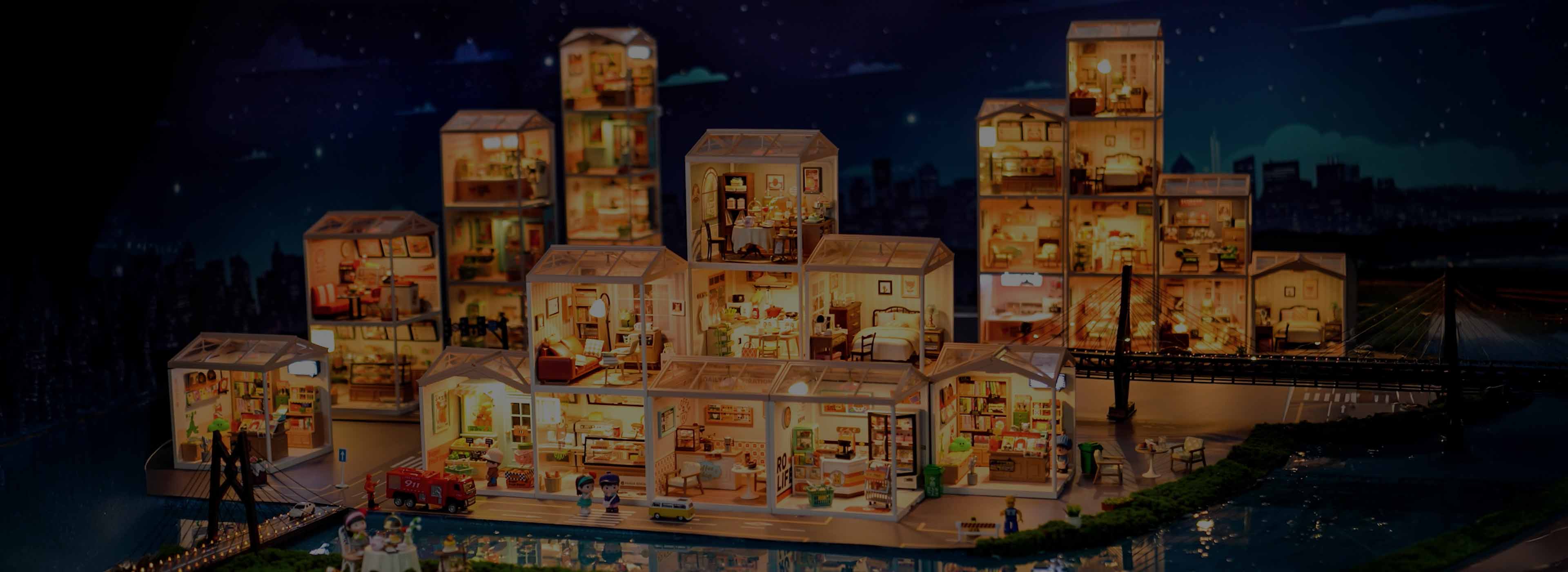 The lighting makes everything so cozy and inviting — it really feels like a tiny town full of life. 🏡🌙